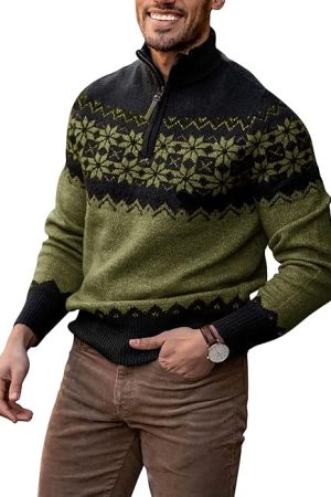 Collar Long Sleeve Soft Knit Norwegian Style Polo Pullover