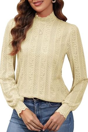 Dressy Tops Casual Lace Long Sleeve T Shirts Trendy Blouse