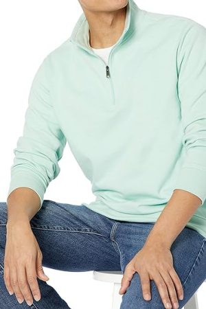 Mint green Men Lightweight French Mock Neck Sweatshirt