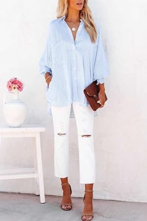 Sleeve Button Down Shirts Jacket Coats with Side Pockets