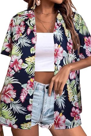 Neck Button Up Tshirt Summer Beach Short Sleeve Blouses Tops