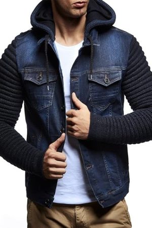 Men Denim Jacket with Knitted Sleeves