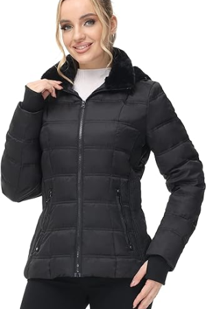 Puffer Coat for Women with Faux Fur Lined Hood and Collar