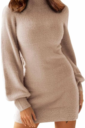 Ribbed Long Sleeve Bodycon Pullover Cute Mini Sweater Dress