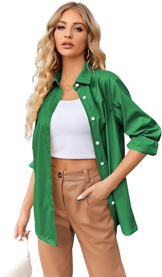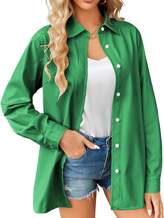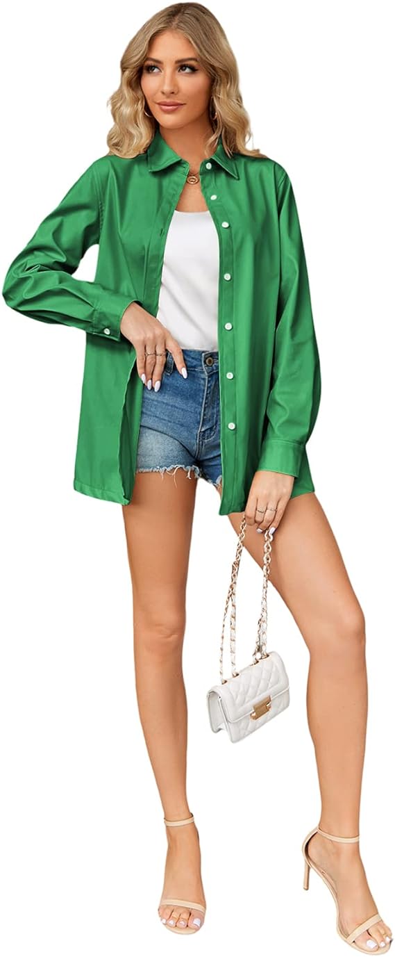 FEATURES: Women’s leather & faux leather jackets & coats, front button closure, classic collar, solid colors, long sleeve jacket, loose fit and leather shirt for women, casual and comfortable to wear. Great for layering or worn on its own tucked in.