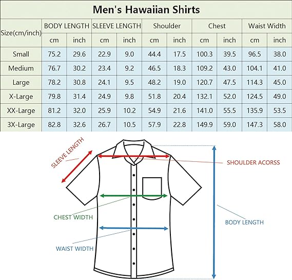 • Perfect Gift: With its unique printed design that combines tropical vibes and casual fashion, this Hawaiian shirt is an excellent gift for your loved ones. Whether it’s for a birthday, holiday, or anniversary, this shirt is sure to become the recipient’s favorite.Easy to Clean: Men’s Hawaiian shirts are easy to clean and maintain. It is recommended to wash them with cold water and hang them to dry. Even after ten years of use, the prints will remain vibrant without fading.